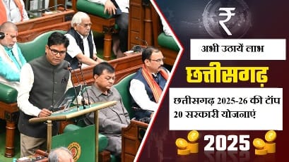 Top 20 Sarkari Yojana in Chhattisgarh 2025-26 : छत्तीसगढ़ सरकार ने 2025-26 के बजट में आम जनता, किसान, महिलाएं, छात्र, मजदूर और बेरोजगार युवाओं के लिए कई नई और पुरानी योजनाओं की शुरुवात किया है। इन योजनओं को आपको भी जानना चाहिए ताकि आप इस योजना का लाभ उठा सके | छत्तीसगढ़ 2025-26 की टॉप 20 सरकारी योजनाएं नीचे दिया गया है | सभी को ध्यान से पढ़े और इस योजना का लाभ उठाये |